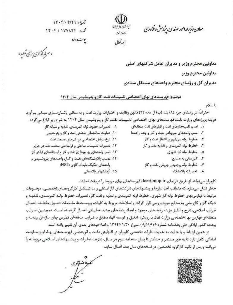 The document is available on doert.mop.ir and has also been shared through the Petrollex Telegram channel.