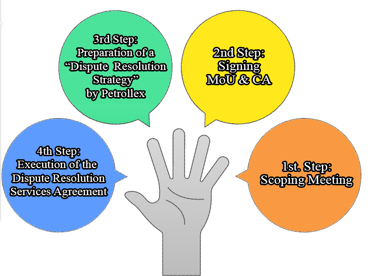 with the support of its technical, financial, and legal experts, Petrollex prepares a dispute resolution strategy and submits a draft dispute resolution services agreement to the applicant.